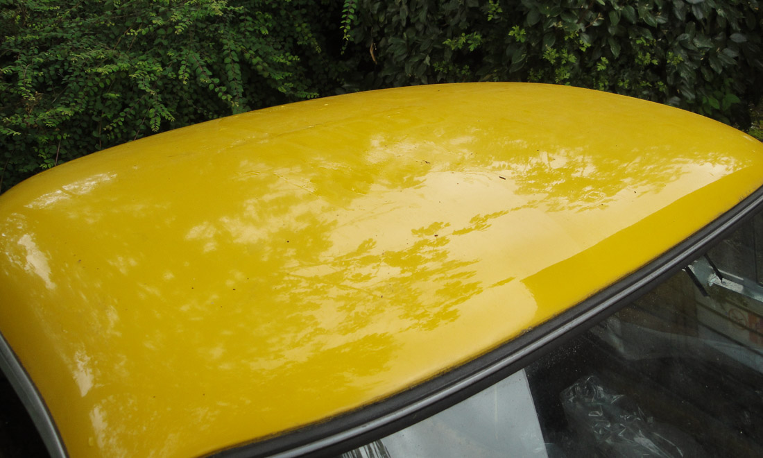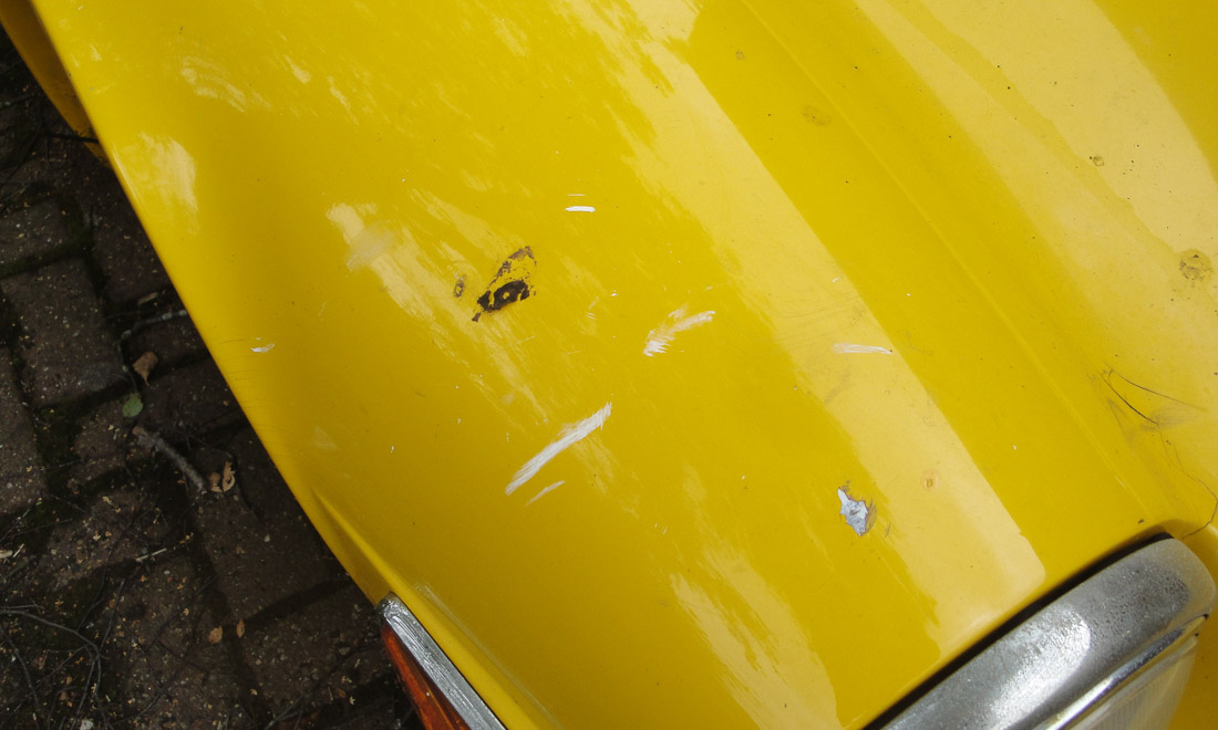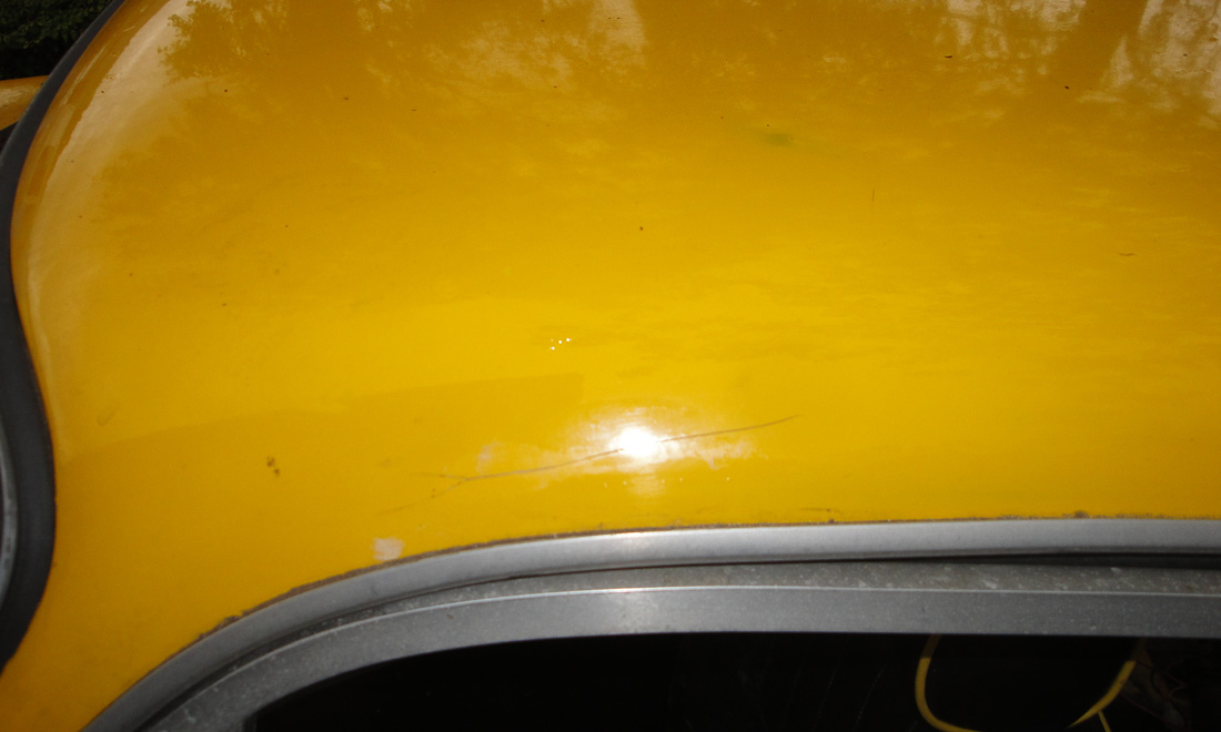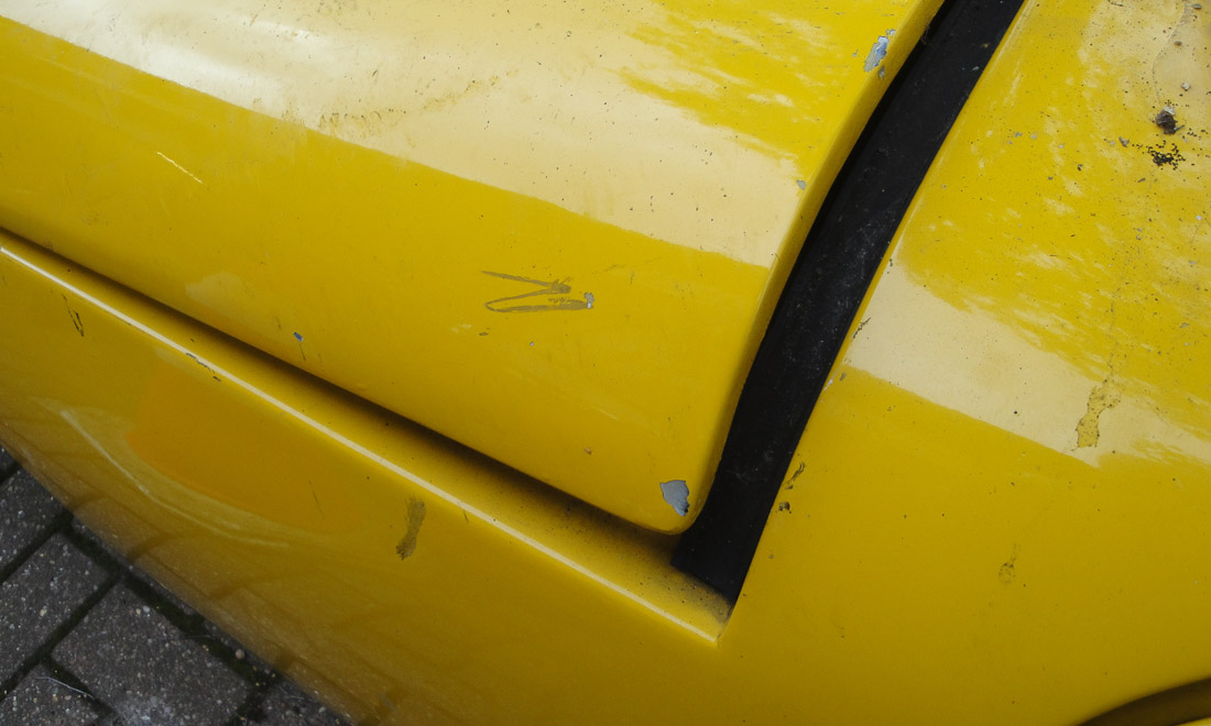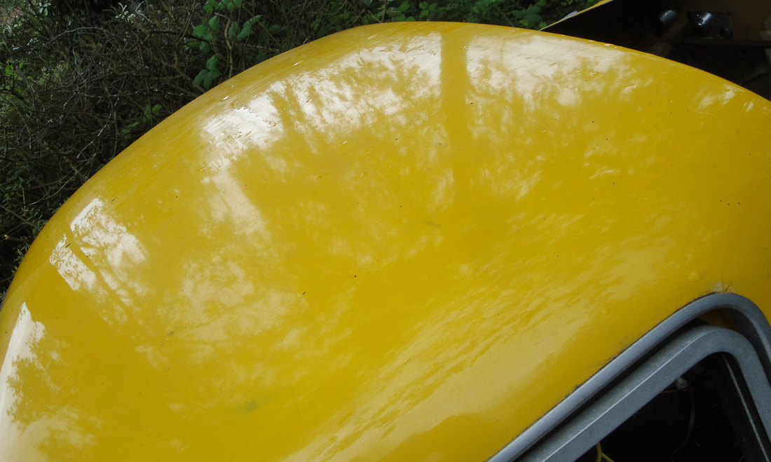 Generally the paint is pretty presentable in its un-polished state though unfortunately it does have a little micro-blistering along with a few chips and scrapes. A significant bonus is that where it has chipped we could identify just the colour coat plus two or maybe three primer/undercoats over the factory gelcoat so if wanted, it should be possible to refinish the TVR without spending huge amounts of time and/or money removing multiple layers of paint.