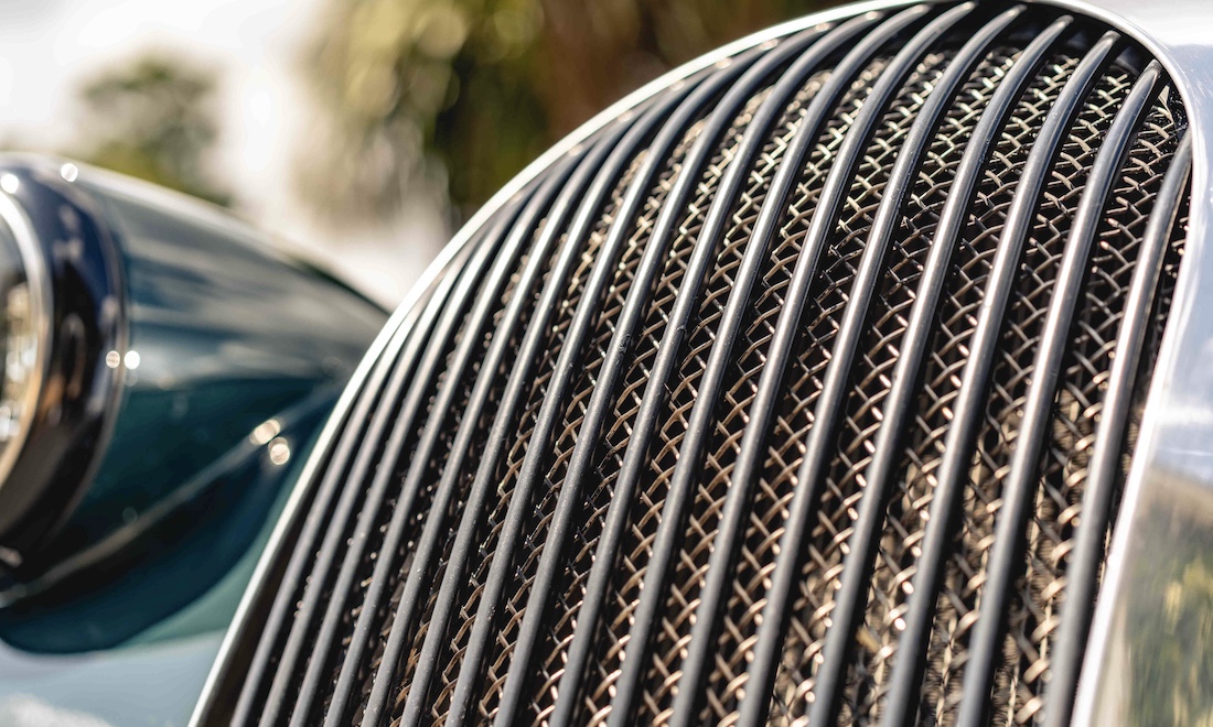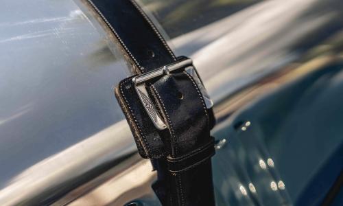 Being aluminium, the body is literally rust free though there are just a couple of small ‘spiders’ where water has got under the paint, though these are hard to spot; again, we have tried to show these in the photo gallery. There is a very small, shallow dent in the nearside rear wing doubtless caused by a stone fired back from the front wheel, though it doesn’t show on any photographs. As it represents something in the region of one third of the bodywork, the fact that the bare aluminium bonnet and radiator cowl have been polished and protected to a high standard is a bonus. The PPF (or is it APF?) under the fleece backed leather bonnet strap speak to the care the Brooklands has had lavished on it.