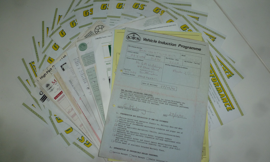 This very early ‘M100’ Elan is, according to Lotus records, the 60th built and it displays the features of the first machines such as the distinctive ‘Opera Spectacle’ headlights. It is also one of the best examples we have seen and a testament to its previous owners and the regular, frequent specialist servicing it has enjoyed throughout its life. This is documented in the Lotus’ original Owners Handbook (full to overflowing with Service Stamps) and is supported by an extensive selection of invoices for work carried out over the years including the all-important cam belt change, last carried out in October 2014 just 2500 miles ago. This comprehensive history is being bought bang up to date with an ‘A Service’ being carried out by an Authorised Lotus Service Centre virtually as we type. They have also carried out a comprehensive 29 point health check which is available to view on file.